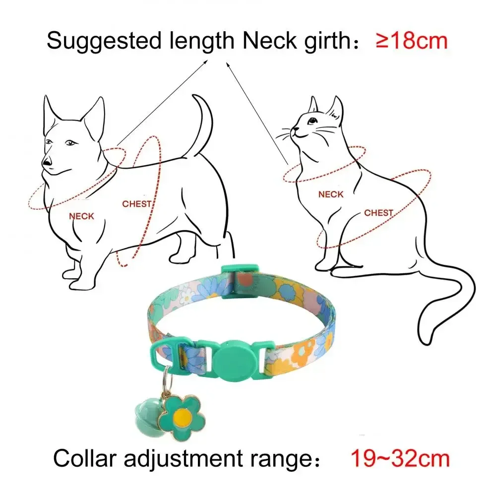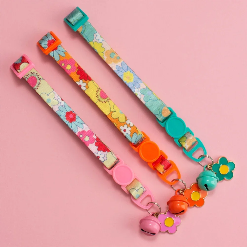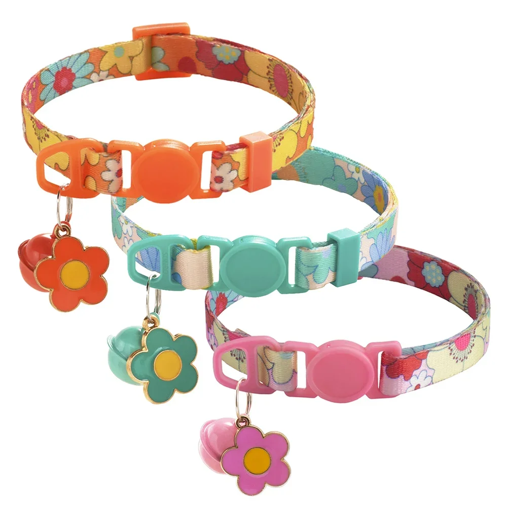Floral Cat Collar Colorful Flower Pendant Necklace Safety Breakaway Quick Release Flowers Cat Collar with Bells Cat Accessories